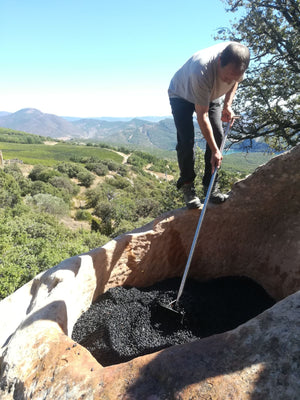 Manual harvest in small 10 kg cases and grapes coming exclusively from the property. The wine has been fermented in different materials (rock fermenters, Wood barrels). 100% of the wine went under malolactic fermentation.